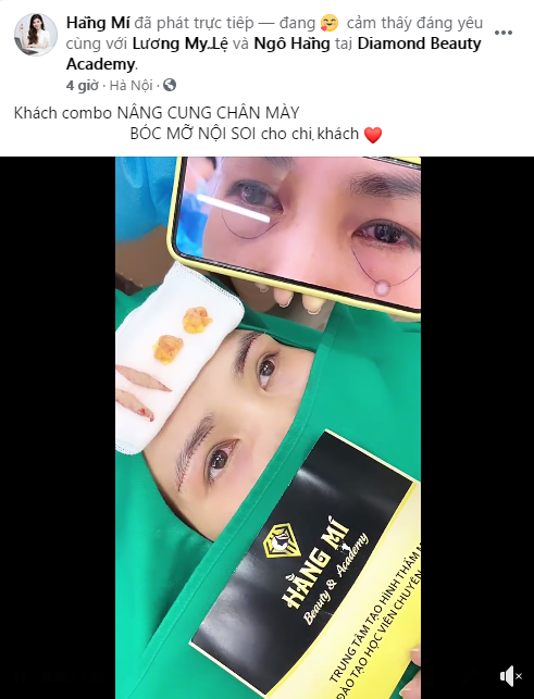 Cụ thể, hàng loạt tài khoản cá nhân có tên Lâm Hằng, Hằng Mí, Ngô Hằng được biết là vợ của chủ cơ sở Diamond Beauty liên tục quảng cáo trên trang cá nhân facebook các dịch vụ làm đẹp xâm lấn như: Tiêm filler, botox, nhấn mí, cắt mí, nâng mũi, làm hồng nhũ hoa, vùng kín,… Thậm chí, chị Hằng tức vợ của chủ cơ sở còn tư vấn “kiêm” luôn cả đào tạo dạy nghề.