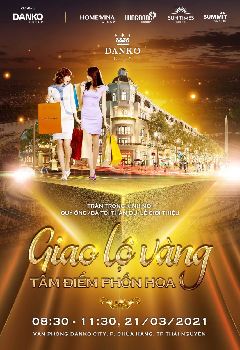 Ngày 28/3/2021, tại VP Danko City, phường Chùa Hang, TP.Thái Nguyên sẽ diễn ra sự kiện ra mắt shophouse Danko City “Giao lộ vàng - tâm điểm phồn hoa”. Các khách hàng tham gia chương trình sẽ có cơ hội bốc thăm may mắn với nhiều phần quà hấp dẫn.