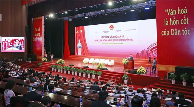 Về nội dung, trong 1 ngày làm việc, Hội thảo đã tập trung đánh giá thực trạng thể chế hóa, ban hành các chính sách và bảo đảm nguồn lực cho phát triển văn hóa, con người Việt Nam trong giai đoạn vừa qua. Hội thảo nhất trí đánh giá những kết quả rất quan trọng đã đạt được, trong công tác xây dựng thể chế, ban hành các chính sách và huy động, quản lý và sử dụng các nguồn lực cho phát triển văn hoá.