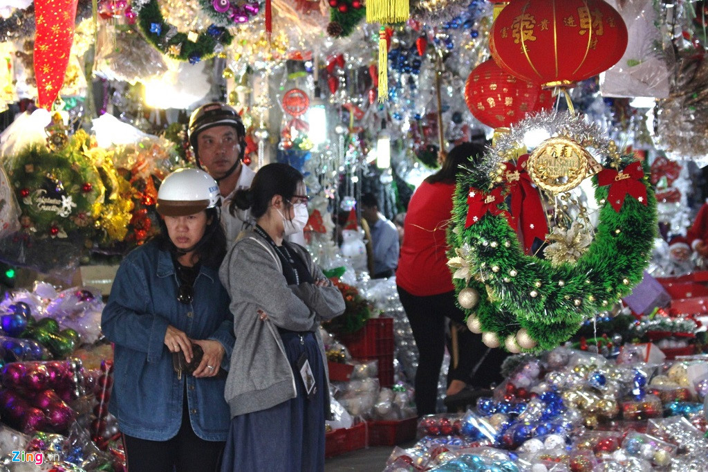 Mùa Giáng sinh năm nay, các tiểu thương tại khu vực Chợ Lớn đã chuẩn bị số lượng lớn các loại hàng hóa trang trí lễ Giáng sinh với màu sắc vui tươi như cây thông, vòng nguyệt quế Noel, trái châu, đèn chiếu sáng, dây thông trang trí..