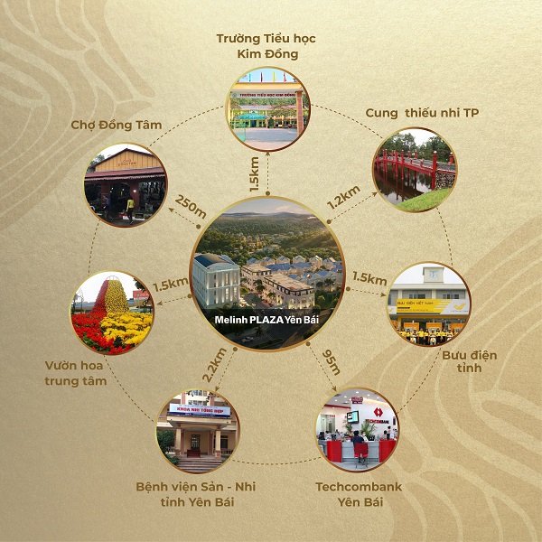 Tọa lạc tại số 826 đường Điện Biên – tuyến đường huyết mạch, nơi trung tâm phát triển của thành phố Yên Bái, Melinh PLAZA Yên Bái sở hữu lợi thế vô cùng lớn khi dễ dàng kết nối với các tiện ích ngoại khu đa dạng ở xung quanh như: Bệnh viên Sản – Nhi tỉnh Yên Bái, Bệnh viện Y học cổ truyền tỉnh Yên Bái, Bệnh viện Đa khoa tỉnh Yên Bái; Trường mầm non Bông Sen, Trường Tiểu học Minh Tân, Trường Trung cấp TDTT tỉnh Yên Bái, Cung Thiếu nhi thành phố Yên Bái; Hệ thống các ngân hàng BIDV, Agribank, Techcombank, MB, vv…