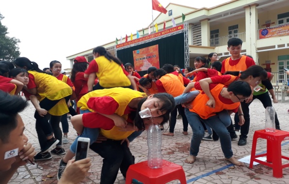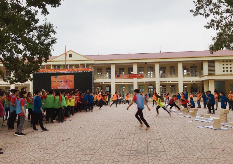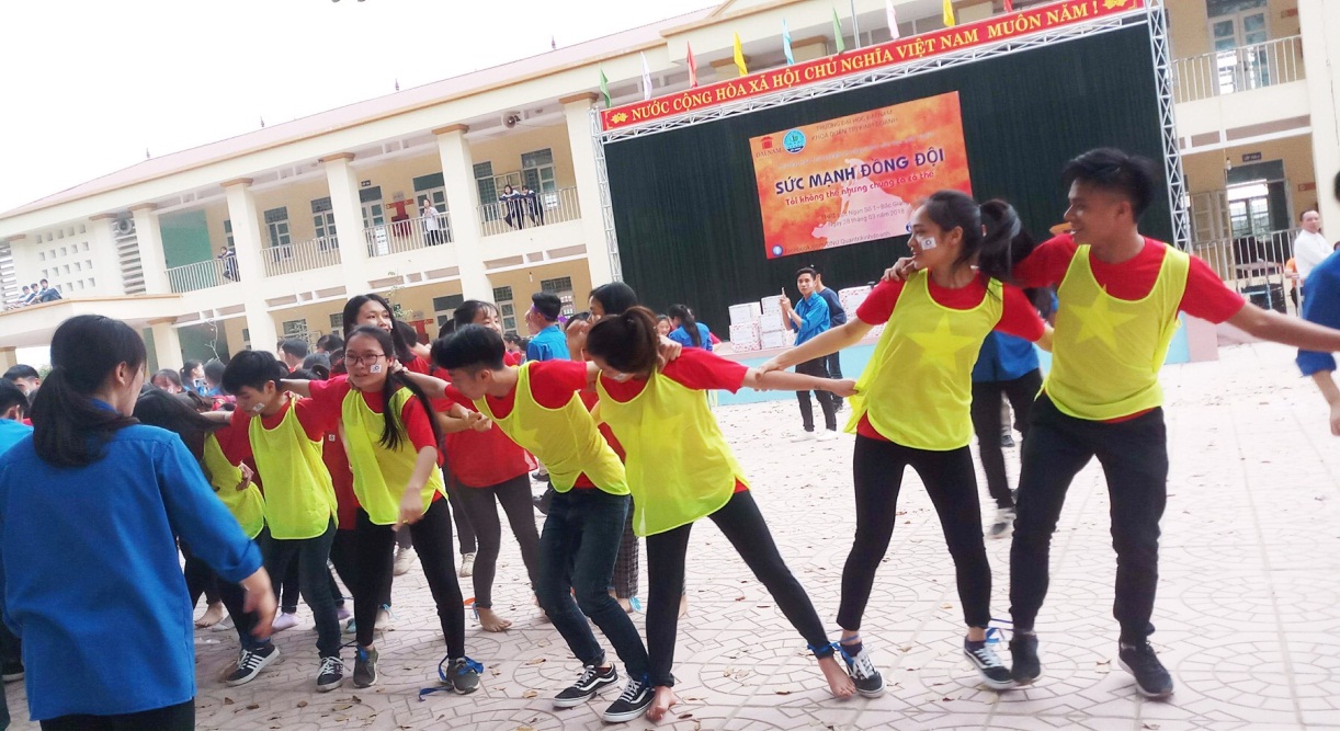 iếp nối chương trình trải nghiệm kỹ năng mềm cho học sinh THPT của khoa Quản trị kinh doanh, ngày 28/03/2018, nhóm sinh viên lớp QTKD - 0801 tiếp tục thực hiện chương trình “Sức mạnh đồng đội” tại trường THPT Lục Ngạn số 1 - Thị trấn Chũ - Huyện Lục Ngạn - Tỉnh Bắc Giang với sự tham gia của đại diện khoa Quản trị kinh doanh, đại diện trường THPT Lục Ngạn số 1 cùng hàng trăm học sinh khối 12 của trường THPT Lục Ngạn số 1.