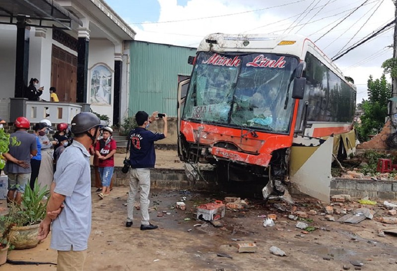 Bị xe tải tông trúng, xe khách mất lái, tông vào ba nhà dân ven đường. Vụ tai nạn làm 2 người tử vong, 5 người khác bị thương được đưa đi điều trị.