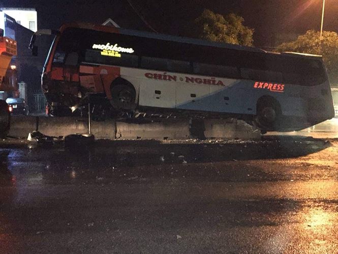 Thời điểm trên, xe khách biển số 76B-009.88, do tài xế Đào Đức Tiến (31 tuổi, ngụ tại thành phố Quảng Ngãi, tỉnh Quảng Ngãi) điều khiển theo hướng nam - bắc. Khi đến đoạn đường trên bất ngờ chiếc xe đâm vào dải phân cách giữa đường và nằm vắt vẻo trên dải phân cách. Vụ tai nạn đã khiến gần 40 hành khách trên xe, trong đó có cả người già và trẻ em bị một phen hoảng loạn.