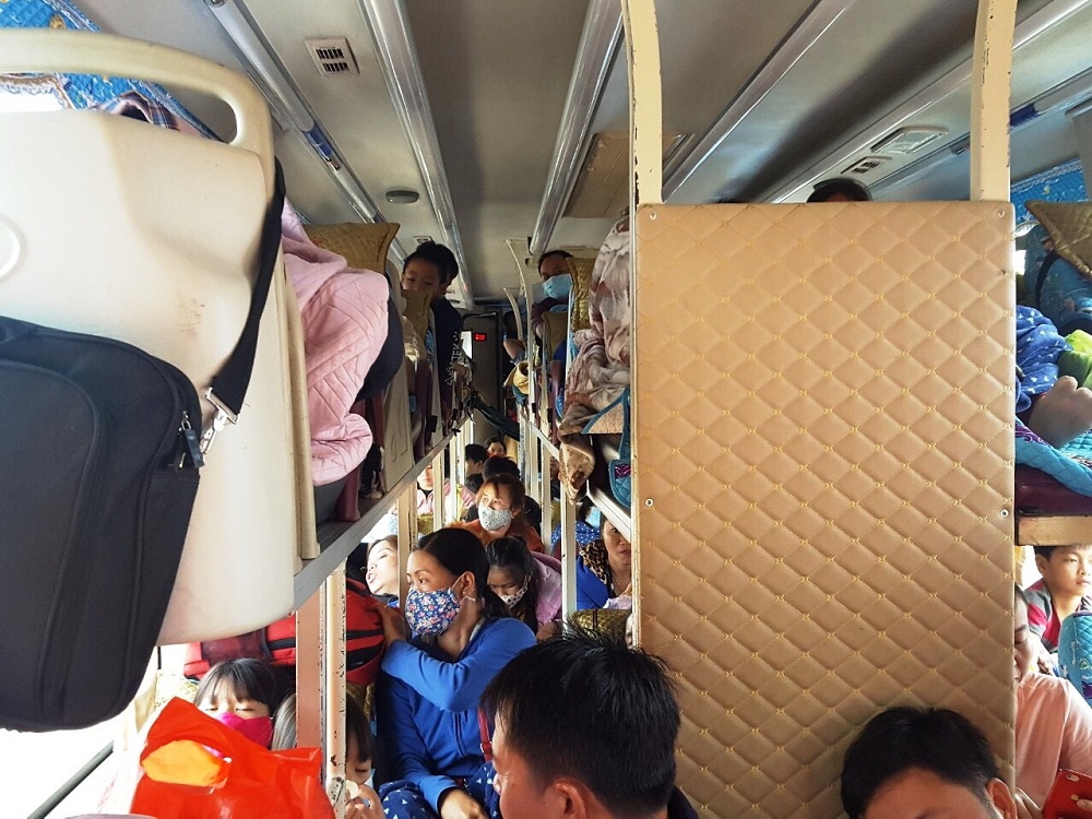 Trạm CSGT Quảng Xương đã yêu cầu lái xe viết cam kết không chở quá số người theo quy định và bố trí xe sang khách để họ tiếp tục hành trình.