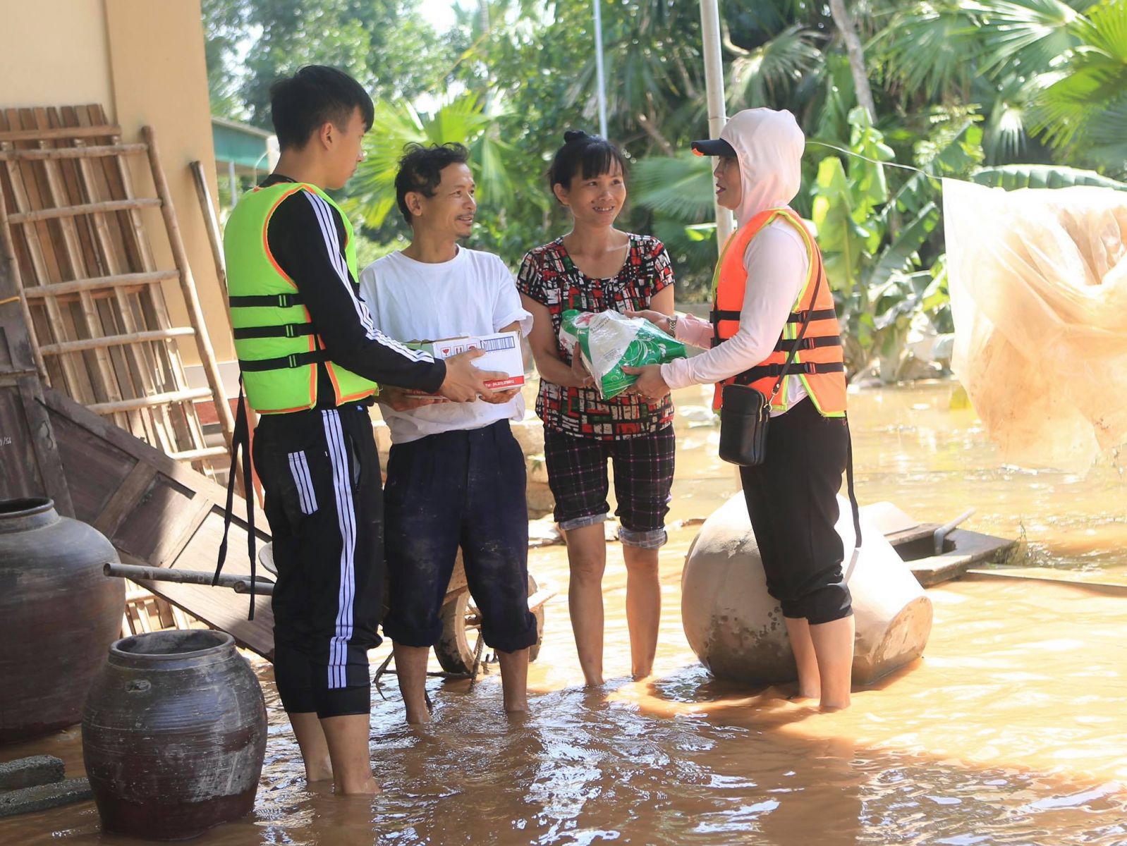 4,5 tấn gạo, 300 suất ăn nóng (xôi, bánh chưng), nước uống và rất nhiều nhu yếu phẩm: lương khô, xúc xích, sữa cùng tiền mặt đã được trao cho bà con vùng lũ tại xã Cẩm Vịnh, xã Cẩm Quan (huyện Cẩm Xuyên); xã Thạch Thắng, xã Tân Lâm Hương (huyện Thạch Hà); phường Đại Nài (TP.Hà Tĩnh).
