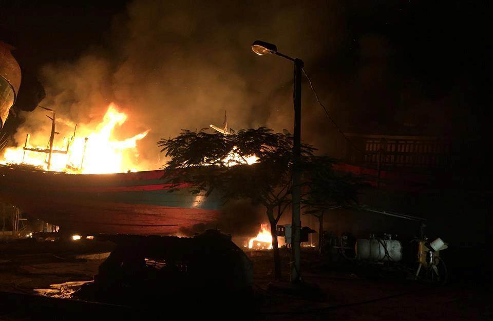 Thấy vậy, chủ tàu và 7 người khác chạy ra chữa cháy cứu tàu nhưng bất thành. Sau tiếng nổ lớn kèm khói lửa bao bốc lên, 3 người trên tàu mất tích, 5 người còn lại bị thương.