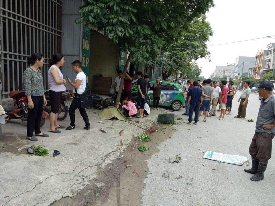 Cụ thể, khi người phụ nữ vừa đi xe máy ra khỏi cổng chợ Nghiêm Xá thì bị taxi BKS 88A – 133.44 đâm vào.