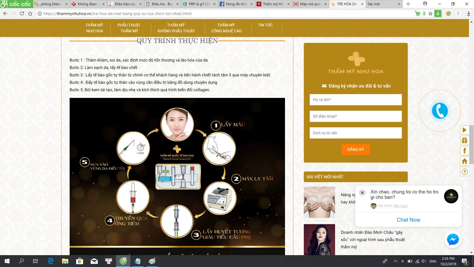 Chị H, trú tại huyện Thanh Trì ( TP. Hà Nội) rất hoang mang cho biết, trước đây chị có tìm hiểu về phương pháp trẻ hóa, làm trắng da bằng tế bào gốc, nhưng được biết phương pháp PRP chưa được cấp phép thực hiện. Không hiểu sao Phòng khám chuyên khoa Phẫu thuật thẩm mỹ Như Hoa lại tư vấn, thực hiện phương pháp sai quy định này cho khách hàng?