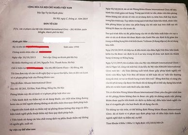 Cuối năm 2019, một khách hàng nữ tên N.H.P (27 tuổi, tại Thanh Xuân, Hà Nội) đã gửi đơn tố cáo đến các cơ quan báo chí về việc sử dụng dịch vụ giảm béo tại Thẩm mỹ viện (TMV) Quốc tế Khaan bị nổi cục, vỡ cơ bụng.