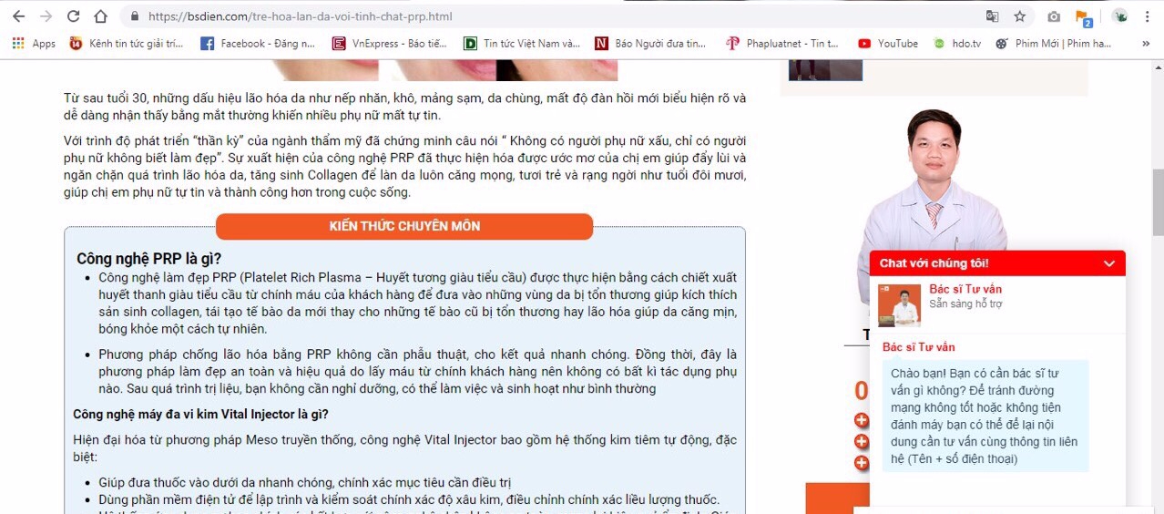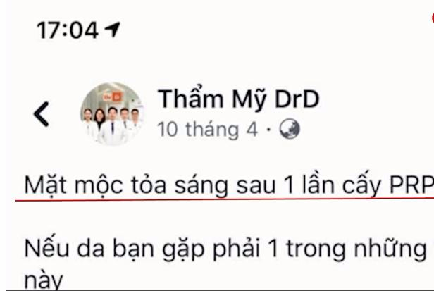 Cụ thể, cơ sở trên đã quảng cáo, mời chào khách hàng dịch vụ tiêm huyết tương giàu tiểu cầu (PRP), phương pháp cấy máu tự thân (gọi tắt là phương pháp PRP) là việc lấy máu trong cơ thể, xử lý ly tâm nhằm lấy lượng huyết tương giàu lượng tiểu cầu và sử dụng chúng đưa ngược lại vào vùng da cần điều trị. Phương pháp này chỉ dùng tế bào của cơ thể người điều trị và chiết tách tỉ mỉ dùng để trẻ hóa làn da.
