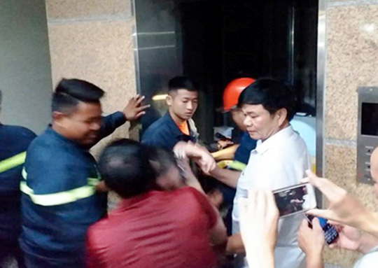 Bằng các phương tiện chuyên dụng và biện pháp nghiệp vụ, lực lượng cứu hộ đã mở cửa thang máy, tháo nắp phía trên và lần lượt đưa người mắc kẹt ra ngoài an toàn.