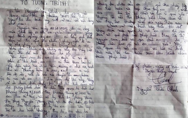 Trước đó, theo Zing.vn, trong bản tường trình gửi lãnh đạo trường THPT Sóc Sơn, em Th. là người nảy sinh tình cảm trước vì dịp lễ 30-4-2018 em Th. nhắn tin nội dung: "Thầy nghỉ lễ vui vẻ nhe thầy".