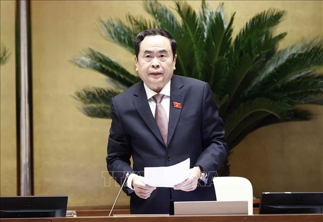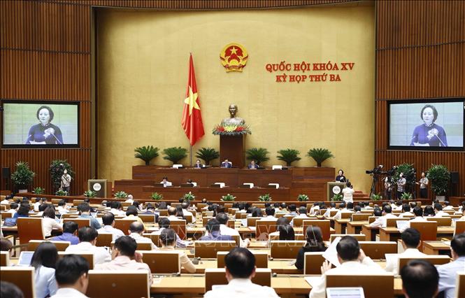 Buổi sáng, Quốc hội họp phiên toàn thể tại hội trường dưới sự điều hành của Phó Chủ tịch Thường trực Quốc hội Trần Thanh Mẫn.