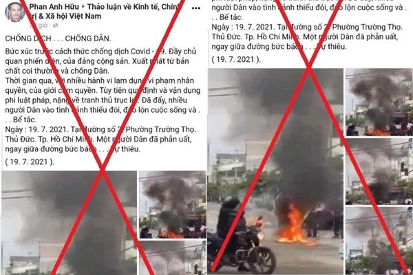 Ngày 19/7, mạng xã hội lan truyền thông tin sai sự thật “Một người dân phẫn uất, ngay giữa đường bức bách… tự thiêu” tại đường số 2, phường Trường Thọ, TP.Thủ Đức kèm hình ảnh một người bị bốc cháy giữa đường.