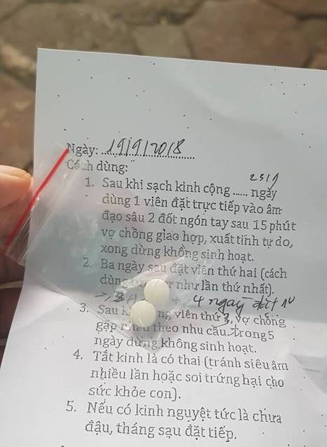 Con gái ông lang L. còn đưa thêm cho chúng tôi một mảnh giấy và hướng dẫn ngày đặt thuốc, cách vợ chồng ân ái với nhau. Theo con gái ông lang L., từ khi có kinh đến ngày thứ 18, đặt 1 viên thuốc vào âm đạo, nhớ là đặt sâu 1 đốt ngón tay. Sau 15 phút thì 2 vợ chồng có thể ân ái. "Tôi nói sau 15 phút thì cũng có thể lâu hơn, nhưng chỉ được ân ái một lần vì khả năng ngày thứ 18 trứng của người vợ chưa rụng. Sau 3 ngày thì tiếp tục đặt viên thuốc thứ 2, đây là thời điểm “vàng”, vì thế 2 vợ chồng phải có kế hoạch gần nhau, sức khỏe tốt, sinh hoạt càng nhiều lần càng tốt, thoải mái theo nhu cầu", ông lang L. nói.