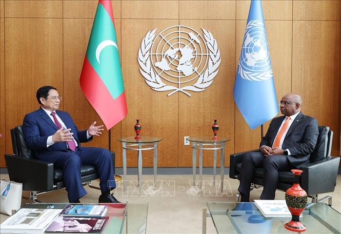 * Tại cuộc gặp với Chủ tịch Đại Hội đồng LHQ Abdulla Shahid, Thủ tướng Phạm Minh Chính đánh giá cao các ưu tiên của Đại Hội đồng LHQ khoá 76 trong lĩnh vực phát triển bền vững, phục hồi sau đại dịch, ứng phó với biến đổi khí hậu, cải cách LHQ. Thủ tướng khẳng định Việt Nam rất coi trọng và ủng hộ vai trò trung tâm của LHQ trong quản trị toàn cầu, điều phối và dẫn dắt các nỗ lực đa phương, khởi xướng và đề xuất các giải pháp toàn cầu để ứng phó với các thách thức chung của cộng đồng quốc tế như dịch bệnh, biến đổi khí hậu.