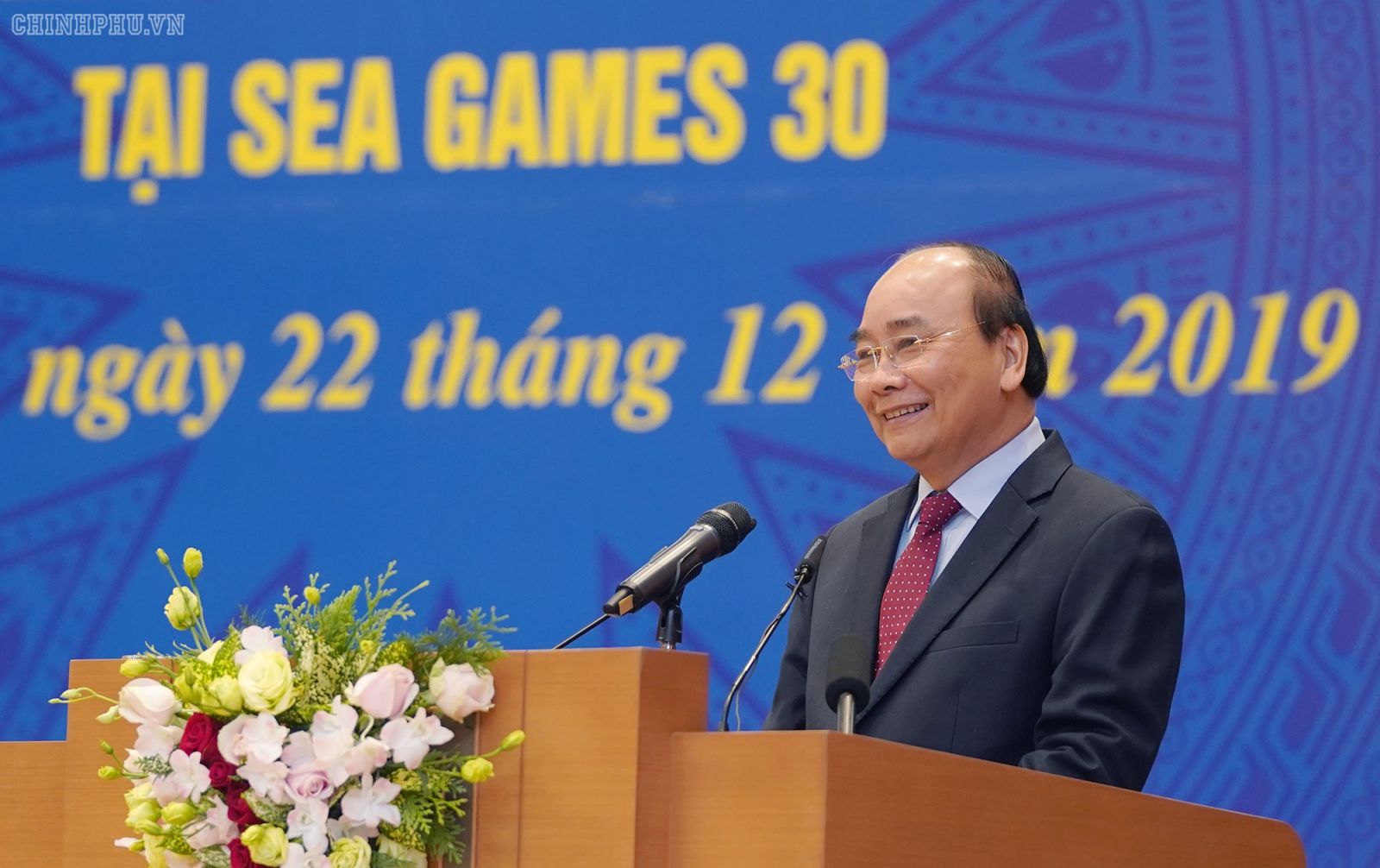 Thủ tướng vui mừng nhắc lại kỳ tích của thể thao Việt Nam tại SEA Games 30: Vượt qua Thái Lan, có nhiều HCV các môn Olympic, nhiều HCV lần đầu tiên có được, lần đầu tiên HCV cả bóng đá nam và nữ… “Vận động viên Ánh Viên giành 6 HCV rồi mà về phòng vẫn khóc vì không vượt được kỷ lục trước đây, không đoạt được 8 HCV. Khát vọng như vậy rất đáng mừng, đáng trân trọng”, Thủ tướng nói. Hay VĐV Phạm Thị Hồng Lệ, đoạt HCV marathon, đã chạy đến kiệt sức, ngất xỉu. Trần Hưng Nguyên, 16 tuổi, đoạt 2 HCV môn bơi, Trần Nhật Hoàng, 19 tuổi, đoạt 3 HCV môn bơi; một số môn mới phát triển ở nước ta cũng đạt những kết quả xuất sắc như Kurash (võ) với 7 HCV, Kickboxing 4 HCV, Dansport đoạt 2 HCV, hay môn Amis (võ gậy truyền thống của nước chủ nhà) cũng đạt 4 HCV.