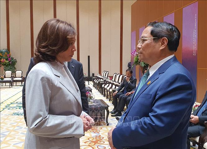 Tại cuộc gặp, Thủ tướng Phạm Minh Chính và Phó Tổng thống Harris bày tỏ vui mừng gặp lại lần thứ ba trong vòng hai năm qua. Hai nhà lãnh đạo hài lòng về những bước phát triển mạnh mẽ của quan hệ Đối tác toàn diện Việt Nam – Hoa Kỳ, hướng tới nâng tầm quan hệ trong thời gian tới, nhất là trên các lĩnh vực kinh tế-thương mại-đầu tư, khoa học-công nghệ, đổi mới sáng tạo, giáo dục đào tạo, giao lưu nhân dân và khắc phục hậu quả chiến tranh.