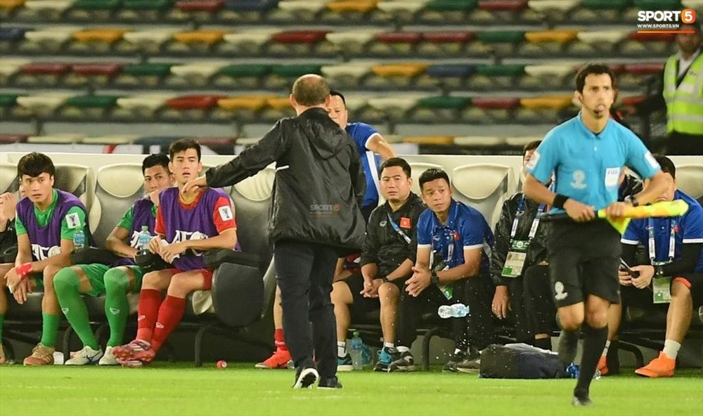 Ngay sau khi trọng tài thổi còi kết thúc trận đấu, HLV Park Hang-seo đã tức giận đá tung chai nước, thể hiện sự tiếc nuối ở trận ra quân tại Asian Cup 2019.