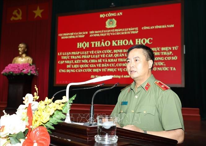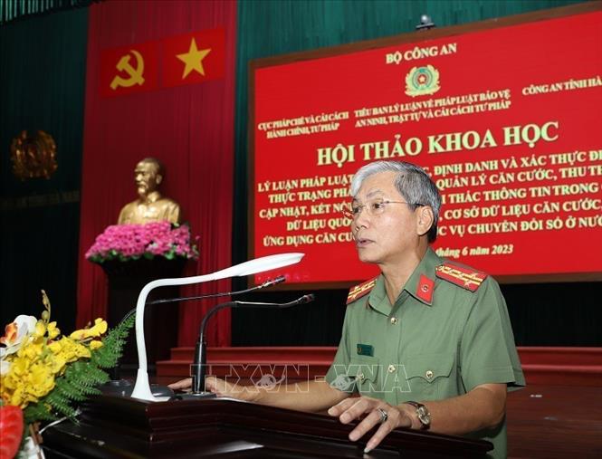 Phát biểu khai mạc hội thảo, Thiếu tướng Phạm Công Nguyên, Cục trưởng Cục Pháp chế và cải cách hành chính, Bộ Công an cho biết, Luật Căn cước công dân năm 2014 được Quốc hội khóa XIII thông qua đã đánh dấu bước tiến quan trọng trong công tác lập pháp của Nhà nước, tạo điều kiện thuận lợi cho việc đi lại, giao dịch của nhân dân, phục vụ yêu cầu nghiệp vụ Công an, góp phần phòng ngừa, đấu tranh chống tội phạm và các hành vi vi phạm trật tự, an toàn xã hội.