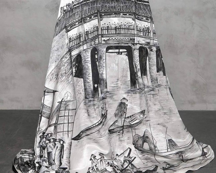 Nhà thiết kế Đinh Văn Thơ tiếp tục đồng hành và gửi gắm thông điệp về một Việt Nam xinh đẹp, hiền hòa giới thiệu đến bạn bè năm châu thông qua hình ảnh Hội An và cụ Nguyễn Thị Xong.