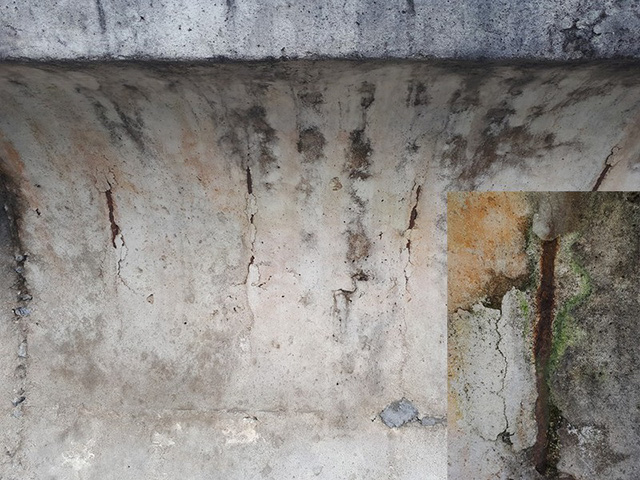 Ngoài ra, tại hệ thống thành chắn sóng, việc đổ bê tông không đảm bảo khiến phần lõi thép lộ thiên, sét gỉ. Hệ thống lưới thép giằng đá hộc dưới chân tràn đã bị đứt gần hết khiến đá trôi ra xa.