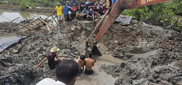 Khi ra tới vuông, ông Tr. thấy bờ đầm có lỗ thủng (lỗ mọi) có đường kính khoảng 1m, nước chảy xiết từ vuông ra kênh. Thấy vậy, bà Nguyễn Ngọc Trân (61 tuổi, em ruột ông Tr.) nói ông ngồi chờ để về gọi người ra phụ giúp chặn lại vị trí bờ bị thủng.