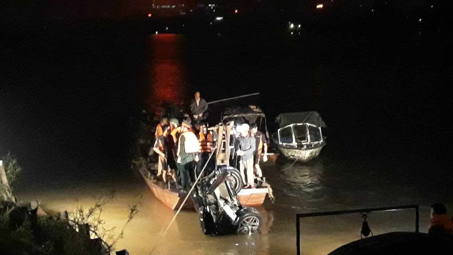 Sau nhiều giờ tìm kiếm, tới khoảng 0h25, lực lượng chức năng đã tìm thấy chiếc ô tô Mercedes dưới lòng sông và trục vớt. Do chiếc xe khối lượng lớn nên lực lượng chức năng phải lai dắt vào gần bờ.