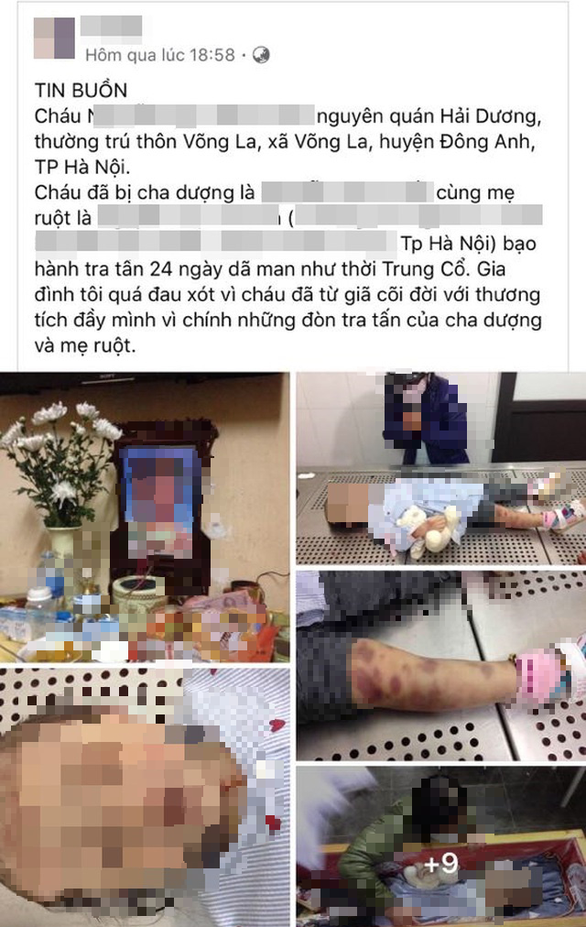 Cơ quan Cảnh sát điều tra, Công an TP Hà Nội đã khởi tố bị can, tạm giam 4 tháng với cặp vợ chồng Nguyễn Minh Tuấn (SN 1989) và Nguyễn Thị Lan Anh (SN 1991), đều trú tại phường Phương Liên, quận Đống Đa để điều tra về hành vi giết người và Tàng trữ trái phép chất ma túy. Nạn nhân của vụ án là cháu N.N.M (SN 2017), con riêng của Nguyễn Thị Lan Anh với chồng cũ.