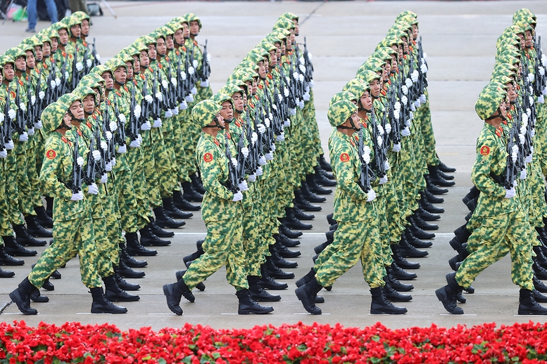 Tiếp đó, lần lượt các khối diễu binh, diễu hành tiến qua lễ đài Quảng trường Ba Đình trên nền nhạc bài “Tiến về Hà Nội” của nhạc sĩ Văn Cao và lời thuyết minh về các lực lượng.