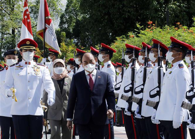 Sáng nay, 25/2, lễ đón chính thức Chủ tịch nước Nguyễn Xuân Phúc và Phu nhân cùng Đoàn cấp cao Việt Nam đã diễn ra trọng thể tại Phủ Tổng thống Singapore - Cung Istana, dưới sự chủ trì của Tổng thống Singapore Halimah Yacob và Phu quân.