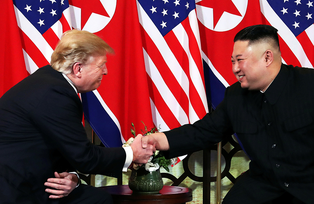 Khi ngồi xuống bên cạnh Ngoại trưởng Mike Pompeo và Quyền Chánh văn phòng Mick Mulvaney, ông tiếp tục hài hước nói với các phóng viên ảnh rằng làm thế nào để chụp cho ông và ông Kim "trông thật đẹp".