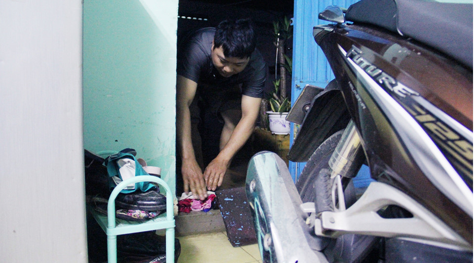 Anh Chế Tài cho biết 4 hôm trở lại đây, sáng nào anh cũng phải thức dậy lúc 3h sáng, canh nước ngập vào phòng trọ.