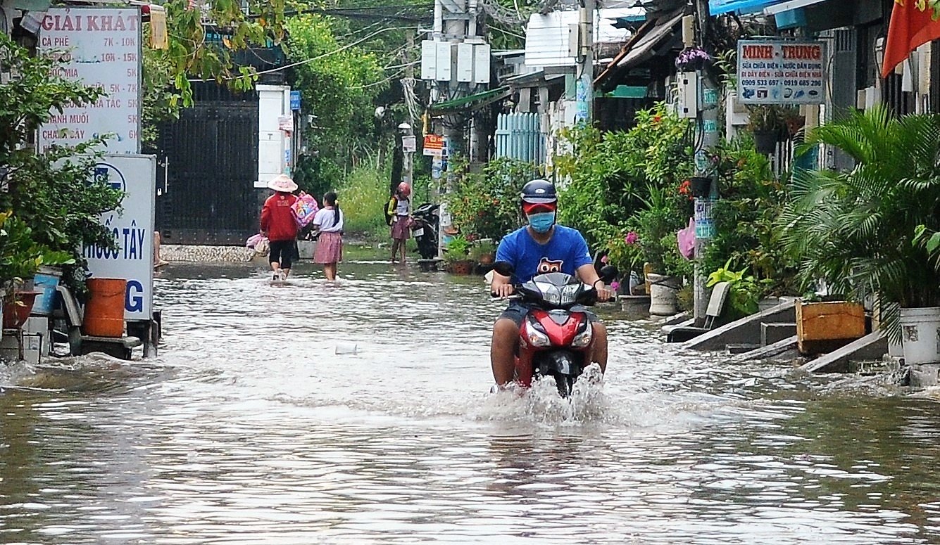 Không chỉ gây ngập đường, nước ngập còn tấn công vào đường hẻm, khu dân cư khiến cuộc sống người dân bị đảo lộn.