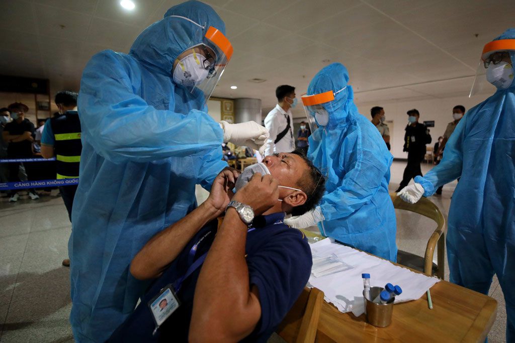 Bước 2: Xét nghiệm tầm soát cho người nhập cảnh ngay sau khi nhập cảnh. Cảng hàng không quốc tế Tân Sơn Nhất bố trí khu vực xét nghiệm và phối hợp các hãng hàng không hướng dẫn người nhập cảnh đến điểm thực hiện xét nghiệm tại sân bay.