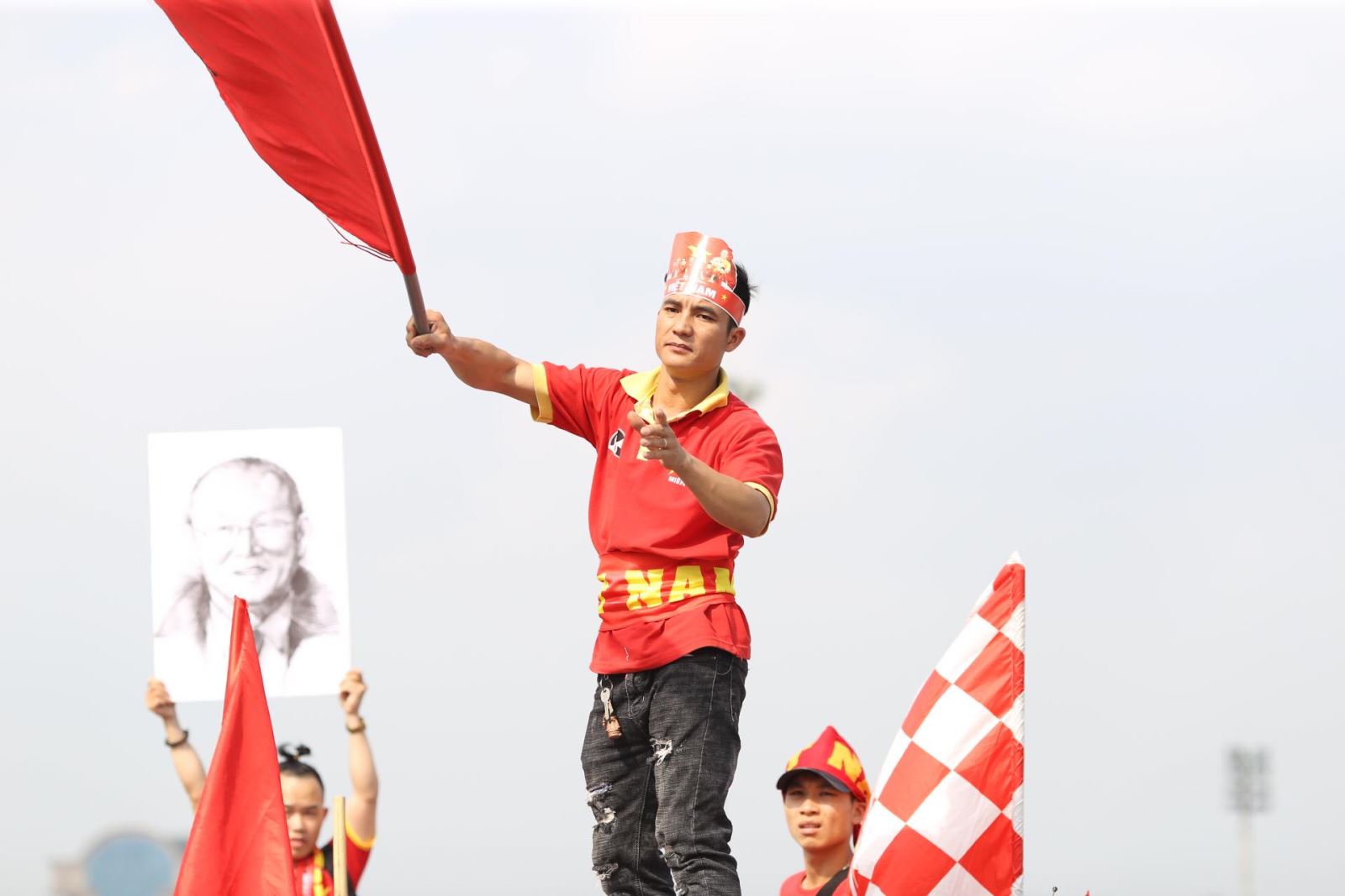 Hòa chung với dòng người đến từ rất sớm, bất chấp đội nắng để cổ vũ cho các cầu thủ Việt Nam, anh Nguyễn Hữu Dương, Hòa Bình tỏ ra hào hứng chia sẻ: “Tôi đã bắt xe từ sáng sớm, vượt hơn 70km từ Hòa Bình về Hà Nội cổ vũ cho đội tuyển Việt Nam. Mặc dù trời hôm nay khá nắng nhưng với tôi không là vấn đề gì, chỉ cần được chứng kiến các cầu thủ của chúng ta thi đấu hết mình vì màu cờ sắc áo thì khó khăn gì tôi cũng có thể vượt qua. Việt Nam vô địch”!
