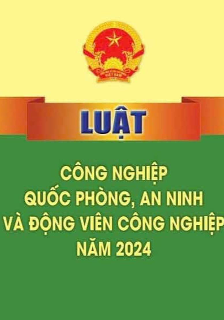 Luật Công nghiệp quốc phòng, an ninh và động viên công nghiệp số 38/2024/QH15 được Quốc hội khóa XV thông qua tại Kỳ họp thứ 7 ngày 27/6/2024, có hiệu lực thi hành từ ngày 1/7/2025.