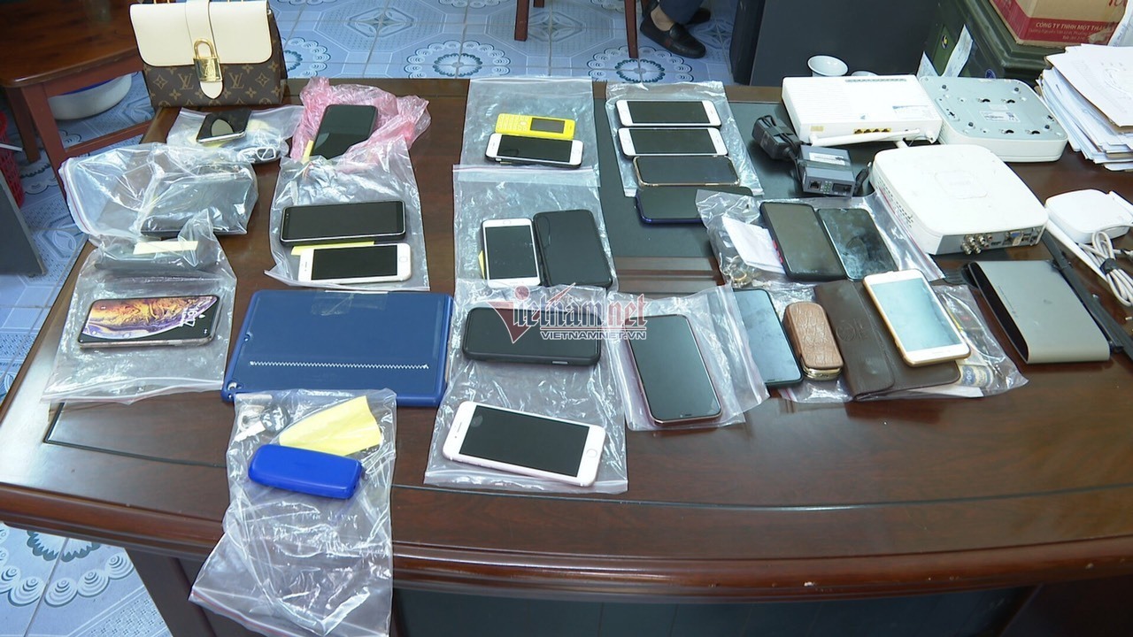 Thời điểm khám xét, công an thu giữ gồm: 7 xe ô tô các loại (trong đó có 02 xe sang hiệu Porsche và BMW, biển số đẹp), 5 bộ máy vi tính, 2 máy tính bảng, 12 điện thoại di động các lọai, 8 thiết bị phát Wifi, 3 két sắt (đã niêm phong), 1 khẩu súng săn, 20 đao kiếm các loại…đồng thời triệu tập trong đường dây về trụ sở Công an TP Thái Bình để đấu tranh làm rõ hành vi phạm tội.