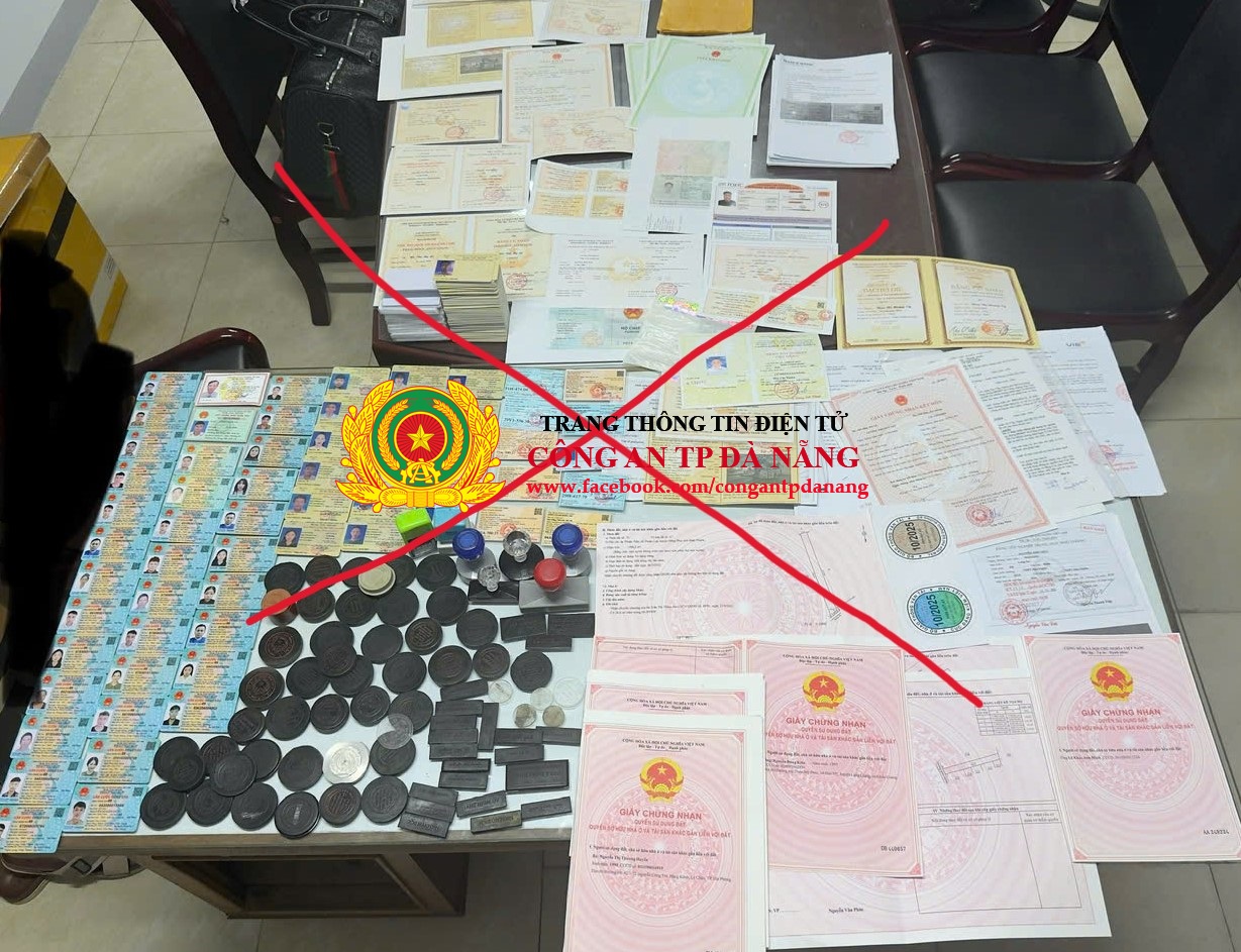 Qua khám xét nơi ở của đối tượng, ngoài việc thu giữ các tài liệu, chứng cứ liên quan đến hành vi lừa đảo chiếm đoạt tài sản, Phòng Cảnh sát hình sự, Công an TP.Đà Nẵng phát hiện được một số tài liệu, phương tiện, thiết bị nghi vấn liên quan đến hành vi làm giả giấy tờ, tài liệu của cơ quan, tổ chức.