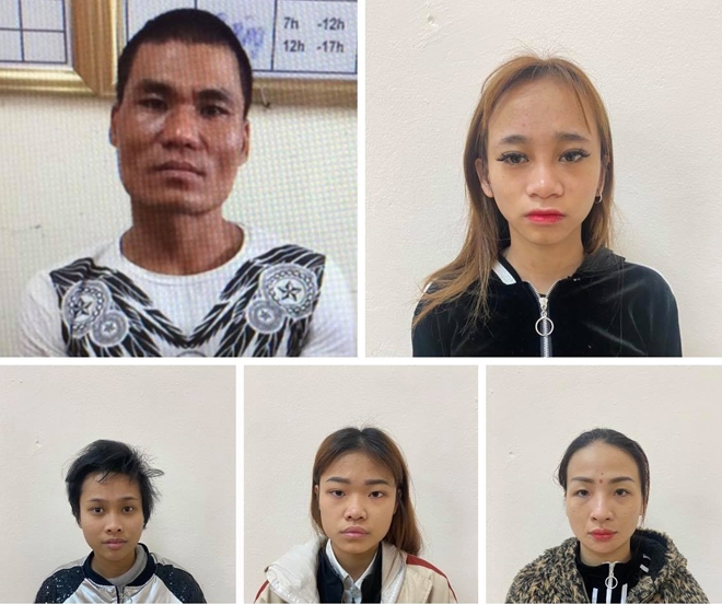 Các đối tượng gồm Lê Văn Vinh (SN 1983, tức "Tú cải" trú tại xã Kim Quan, huyện Thạch Thất, Hà Nội), Nguyễn Thị Thùy Dương (SN 1991), Tạ Thị Thùy Linh (SN 2003), Bùi Nhật Lệ (SN 2001) và Trần Thị Huệ (SN 2003) cùng ở tại xã Thạch Hòa, huyện Thạch Thất.