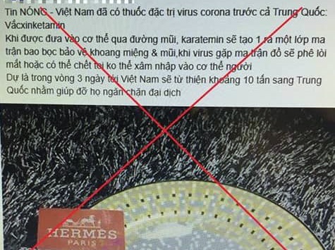 Trước đó, cơ quan công an phát hiện N.Đ sử dụng tài khoản facebook cá nhân của mình đăng thông tin với nội dung: “Tin NÓNG: Việt Nam đã có thuốc đặc trị virus corona trước cả Trung Quốc: Vắcxinketamin.