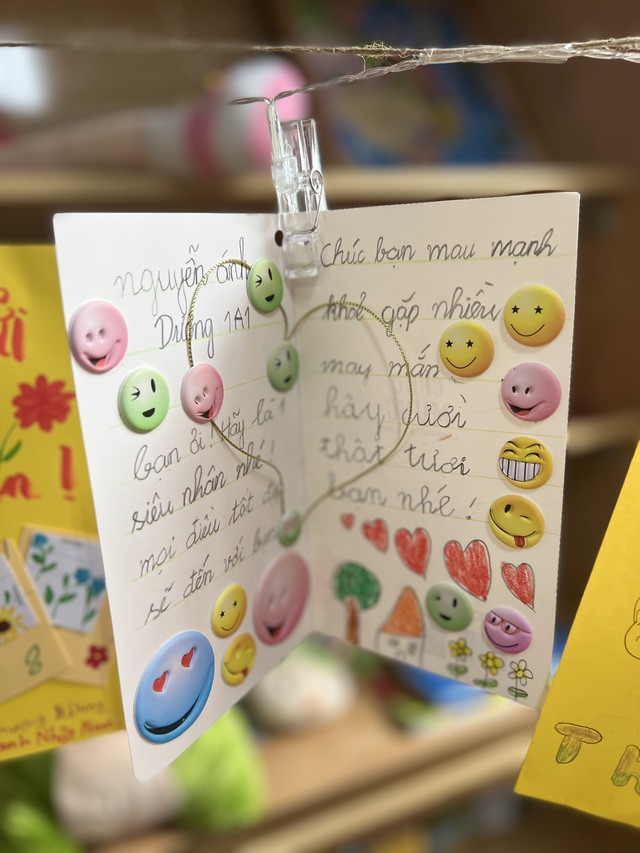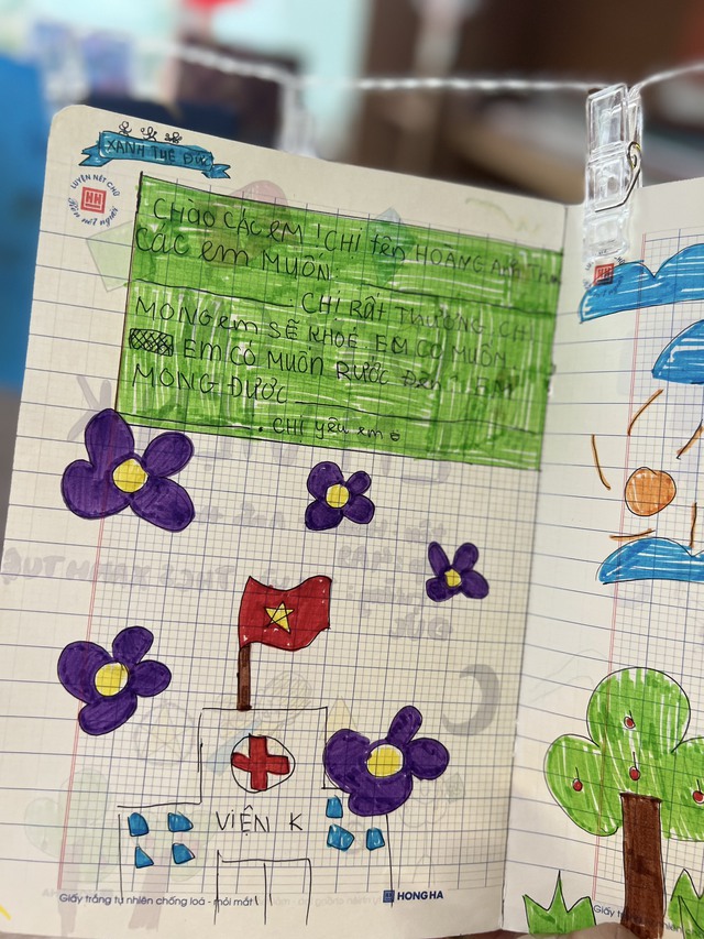 Cùng với đó là những tình cảm, món quà, những lời động viên từ chính những bạn nhỏ ngoài kia gửi gắm đến những "chiến binh" nhỏ tuổi. Những nét chữ nguệch ngoạc lại là một động lực, niềm động viên đầy to lớn đến các bệnh nhi.