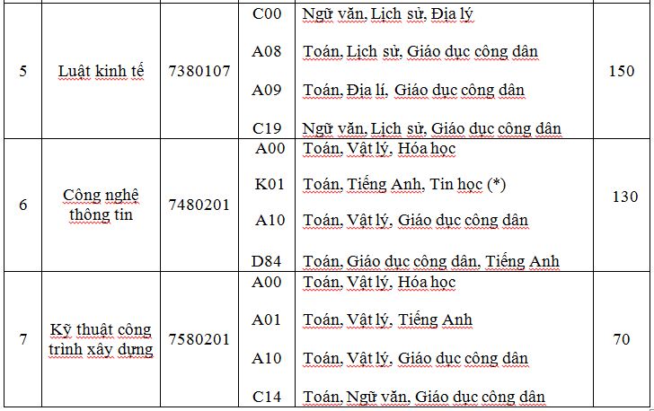 Lưu ý: Các thí sinh trúng tuyển đã tốt nghiệp trình độ trung cấp chuyên nghiệp hoặc cao đẳng cùng khối ngành được hội đồng khoa học đào tạo nhà trường xét công nhận kiến thức đã tích lũy sẽ được miễn học, miễn thi các học phần này trong chương trình đào tạo và được miễn giảm học phí theo số tín chỉ đã được công nhận.