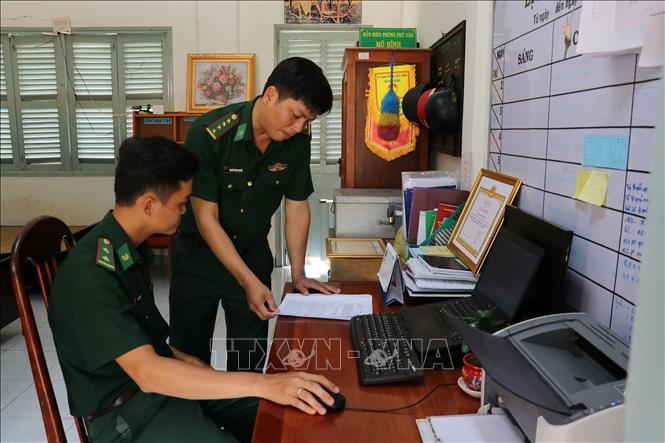 Đại úy Nguyễn Minh Quyến, Phó Đồn trưởng Đồn Biên phòng Phú Tân, Bộ đội Biên phòng Tiền Giang, là một trong điển hình trong phong trào học tập và làm theo Bác.  Ảnh: Hữu Chí/TTXVN