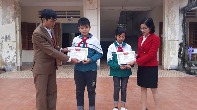 Sáng nay 4/11, tại buổi lễ chào cờ đầu tuần, thầy và trò Trường THCS xã Thanh Lĩnh, huyện Thanh Chương, Nghệ An tổ chức tuyên dương hành động đẹp của hai em Nguyễn Thế Đan và Nguyễn Thị Hoài Linh - học sinh lớp 7B của trường.