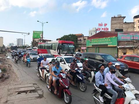Tại các cổng bến xe Giáp Bát, Nước Ngầm, rất nhiều tài xế xe ôm, taxi dừng đỗ, đón, bắt khách khiến tình trạng ùn tắc càng phức tạp.
