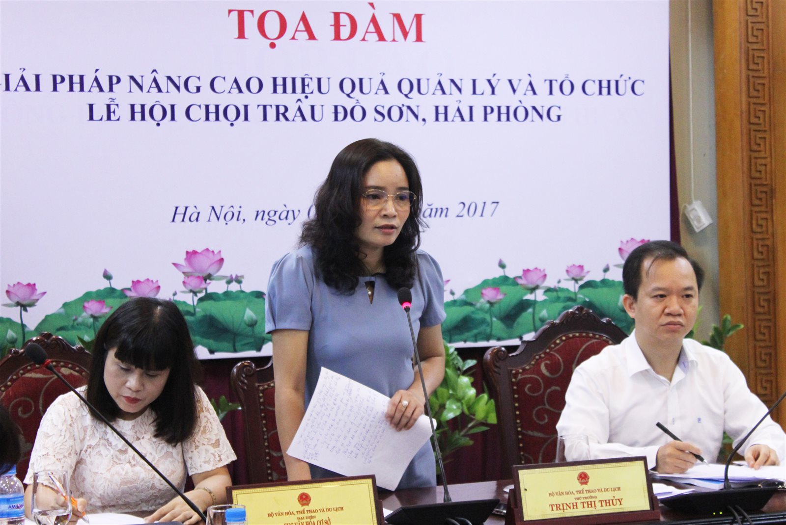 Ngoài việc bán vé, đề án này cũng chưa thực hiện đúng tinh thần chỉ đạo của bộ VH,TT&DL. Theo đó, Bộ đã yêu cầu UBND TP.Hải Phòng lấy ý kiến các nhà khoa học để xây dựng đề án và điều quan trọng là nên bỏ phần vòng đấu loại tại lễ hội Chọi trâu Đồ Sơn" - bà Trịnh Thị Thuỷ cho hay.