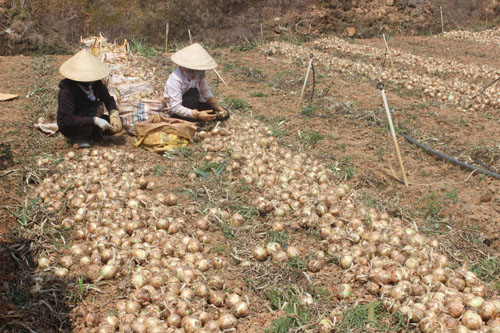 Ông Bùi Đức Công ở phường 7- Đà Lạt cho biết, với những vườn hành đẹp, sản lượng đạt mức cao thì 1.000 m2 cũng chỉ thu được 8 tấn. Với mức giá 3.000 đồng một kg như hiện nay thì nông dân khó thu hồi vốn. Ở cùng thời điểm năm trước, hành tây có giá 6.000 đồng.