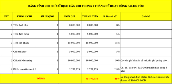 Demo hình ảnh quản lý chi phí cố định của một salon tóc.